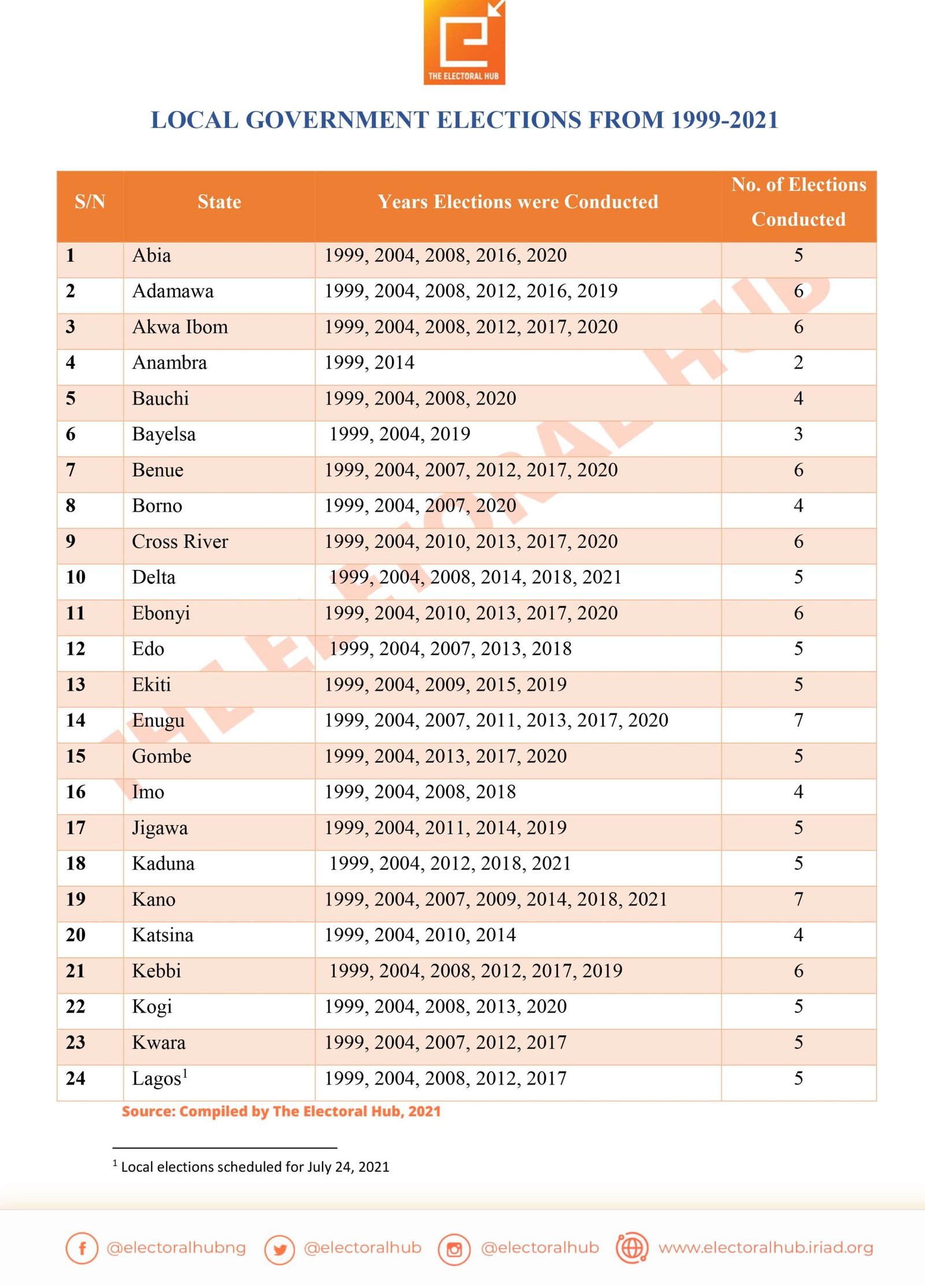 Local Government Elections from 1999-2021 - The Electoral Hub
