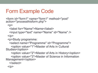 HTML Forms is used to create form page using input tag. Learn how to ...