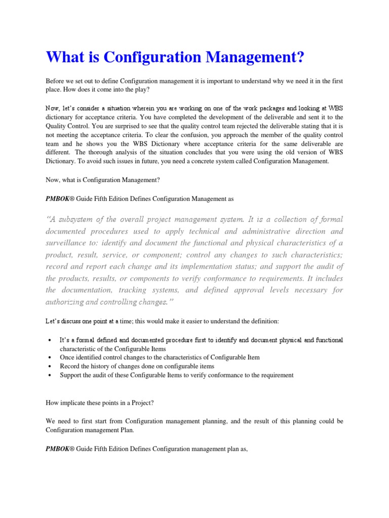 What Is Configuration Management?: PMBOK® Guide Fifth Edition Defines ...