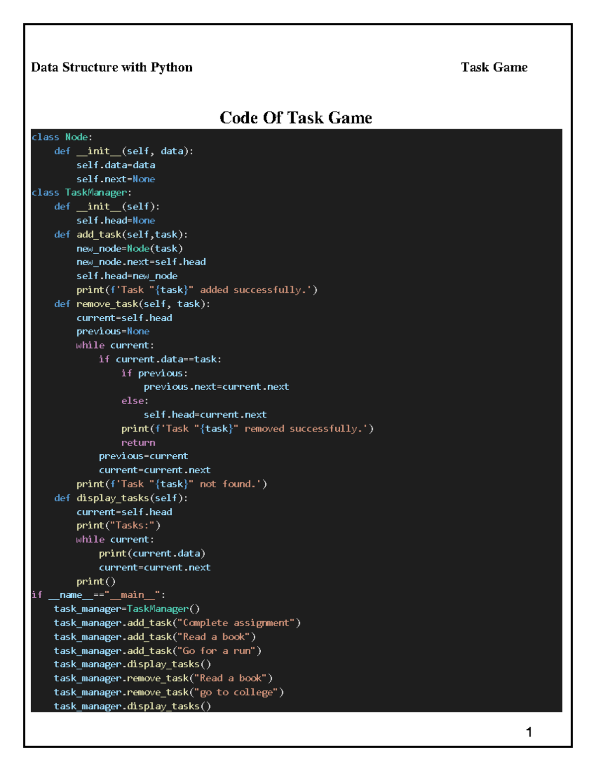 Ds report - 1 Data Structure with Python Task Game Code Of Task Game ...