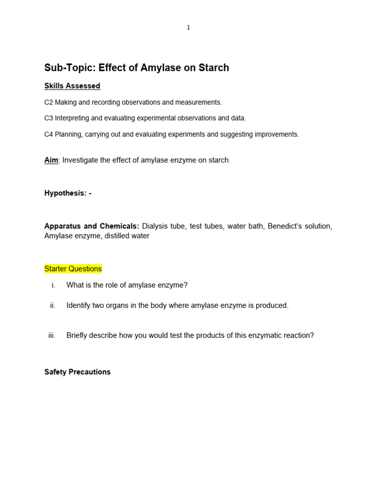 Yr 10 Prac On Amylase Enzyme | PDF | Enzyme | Experiment