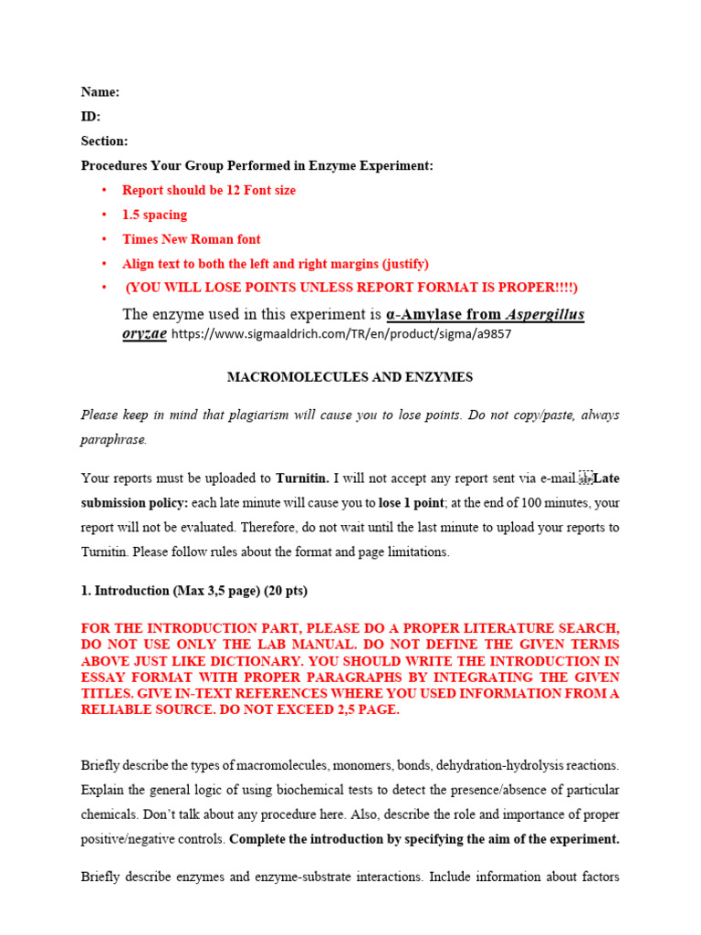Lab report experiment assignment 1 enzyme.docx - Lab report experiment ...