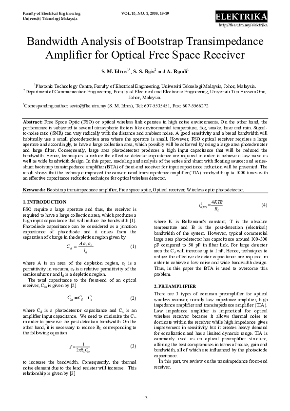 (PDF) Bandwidth Analysis of Bootstrap Transimpedance Amplifier for ...