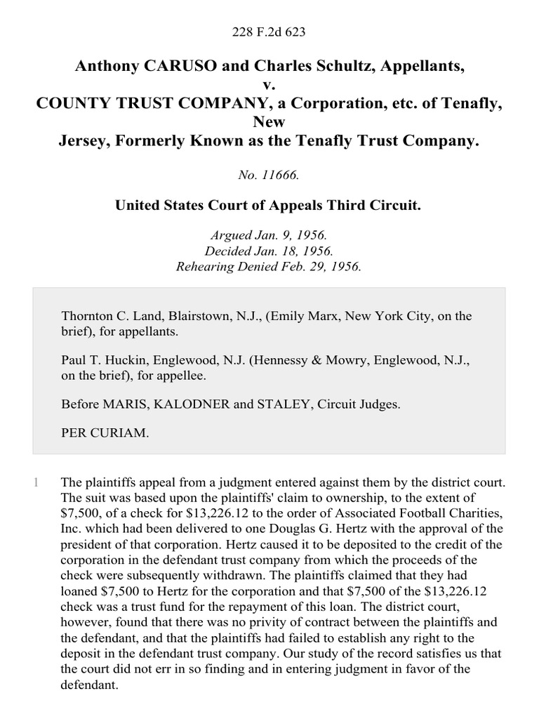 Anthony Caruso and Charles Schultz v. County Trust Company, A ...