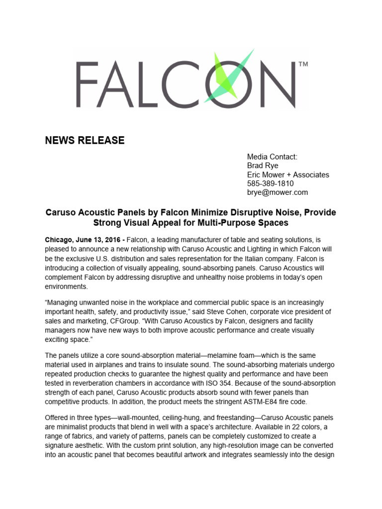 Falcon, Caruso Acoustic News Release Final | PDF | Home & Garden | Art