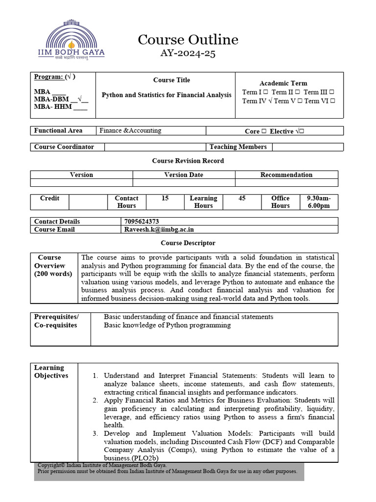 Python For Finance Syllabus | PDF | Financial Modeling