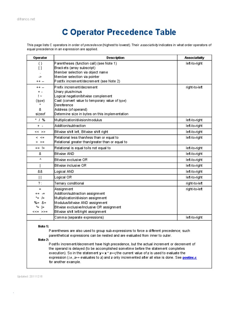 C Operator Precedence Table | PDF | Areas Of Computer Science ...