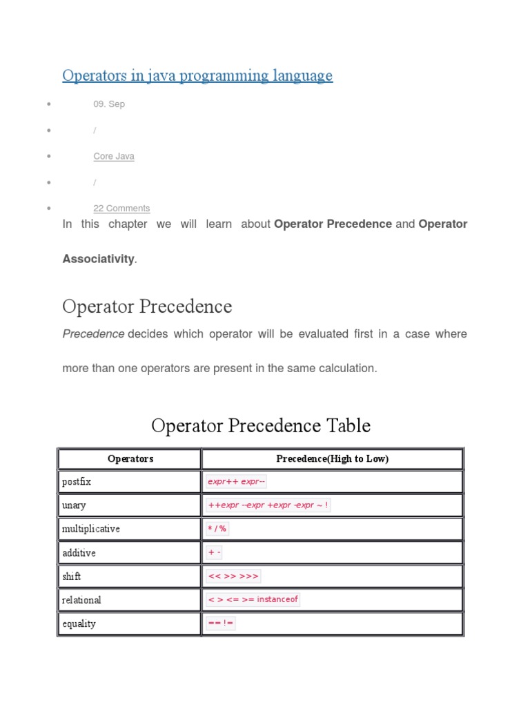 Java Operator Precedence Explained | PDF | Boolean Data Type | Integer ...