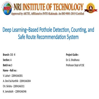 Pothole detection using deep learning models | PPTX