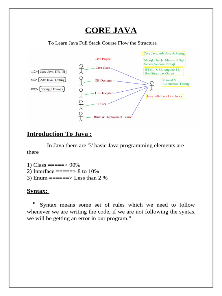 CORE JAVA Syllabus: 1. Core Java Programming Introduction of Java | PDF ...
