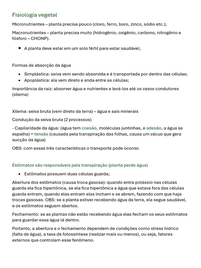 Fisiologia Vegetal - Objetivas | PDF | Estoma | Raiz