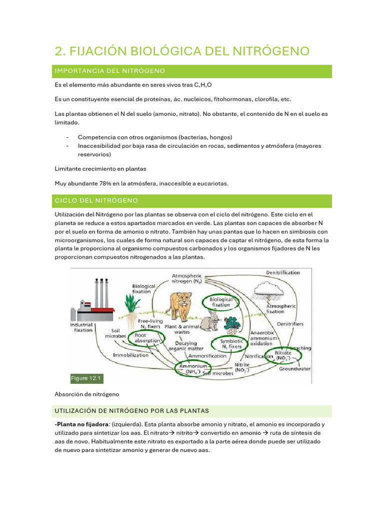 Fijación Biológica del Nitrógeno en Plantas | PDF | Nitrógeno | Hongo