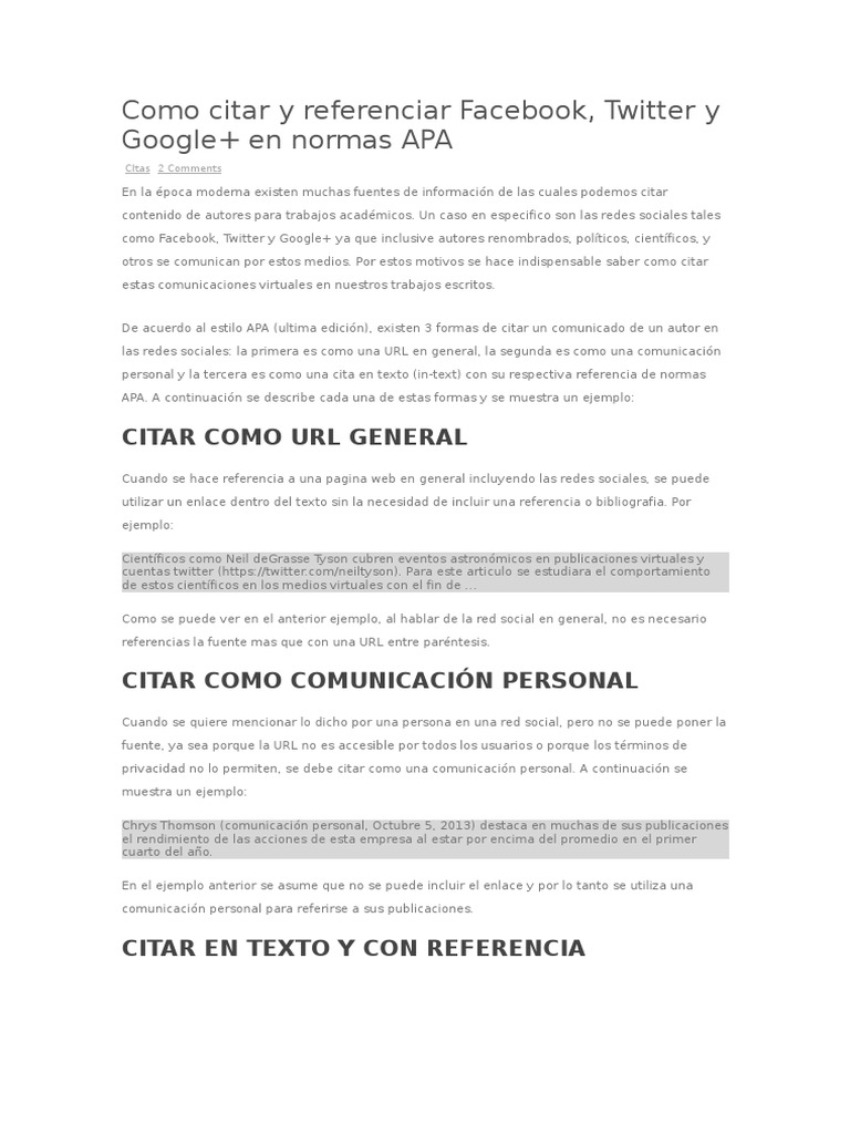 Citas APA en Redes Sociales | PDF | Servicio de redes sociales ...