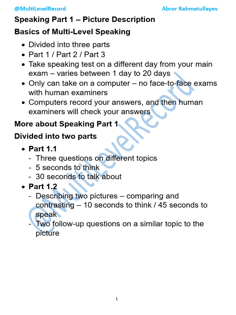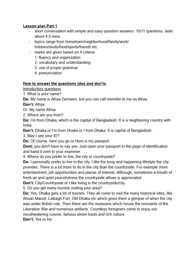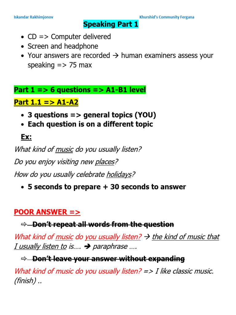 IELTS Speaking Part 1 & 2 & 3 | PDF