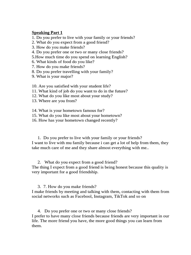 IELTS Speaking Part 1 Questions Sample Answers Family/Friends