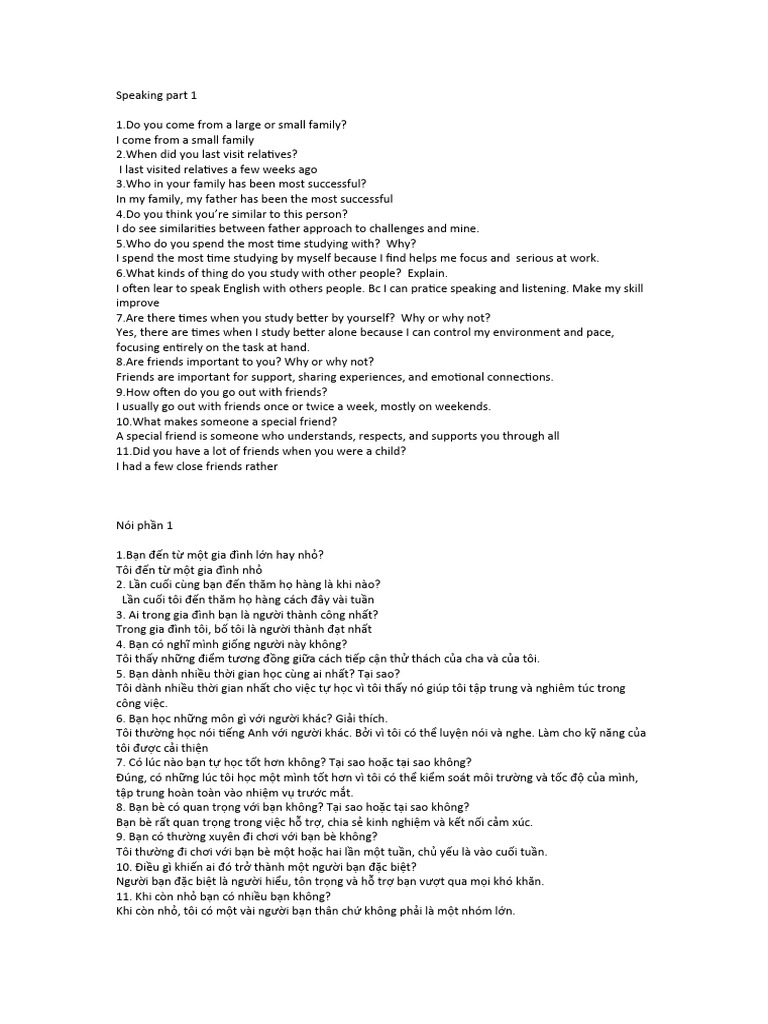 Speaking Part 1.1 + Part 1.2 | PDF | Linguistics | Grammar
