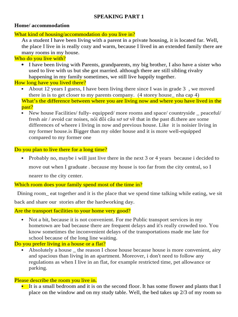 SOLUTION: Ielts speaking part 1 topics questions - Studypool