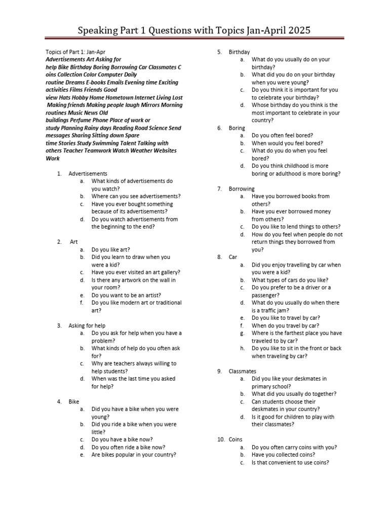 Comprehensive Guide to IELTS Speaking Part 1 Topics and Questions – LovHind