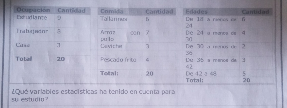 Resuelto:¿Qué variables estadísticas ha tenido en cuenta para su estudio?