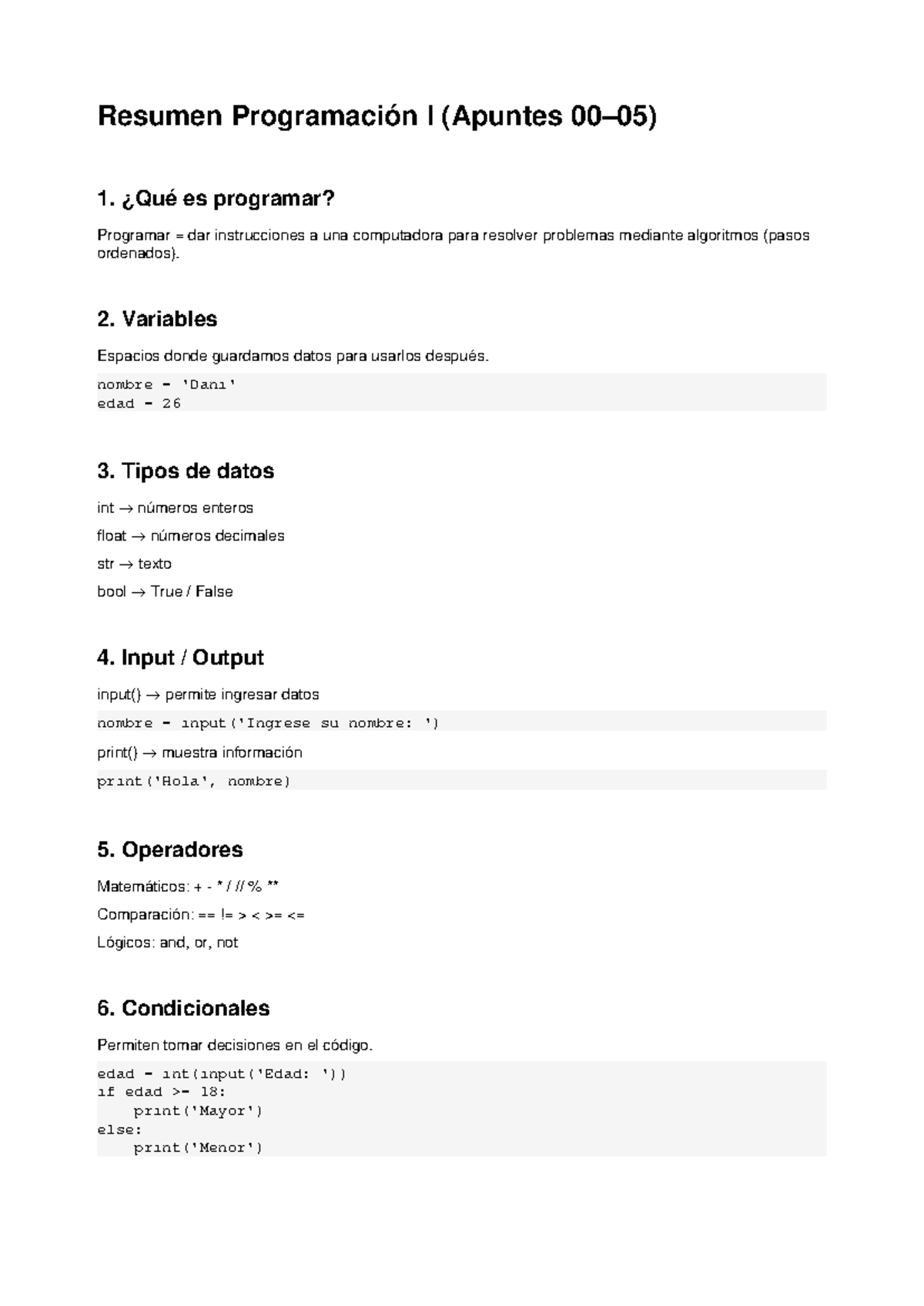 Resumen Programación I: Apuntes sobre Algoritmos y Variables - Studocu
