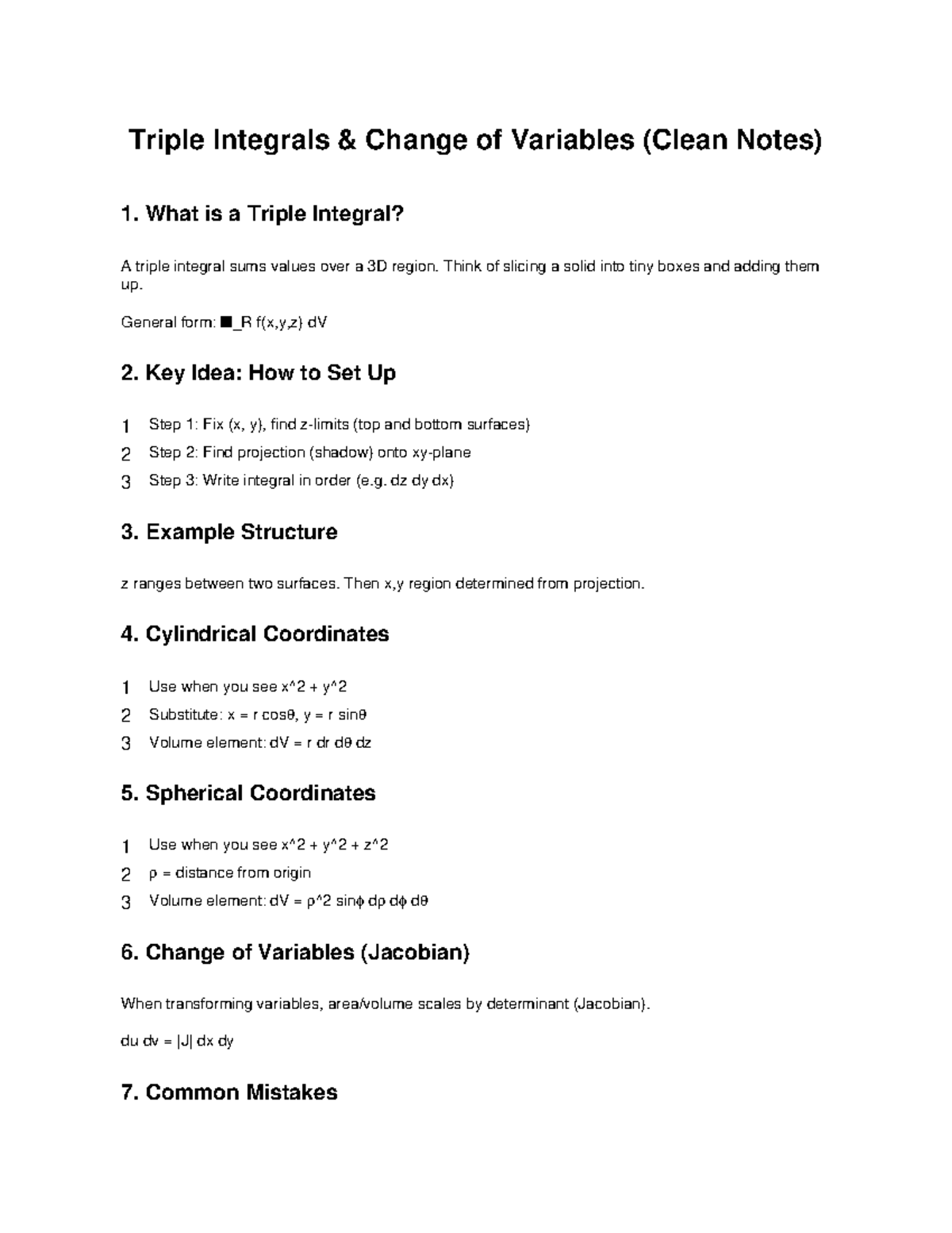 Triple Integrals: Change of Variables Notes (Clean) - Studocu