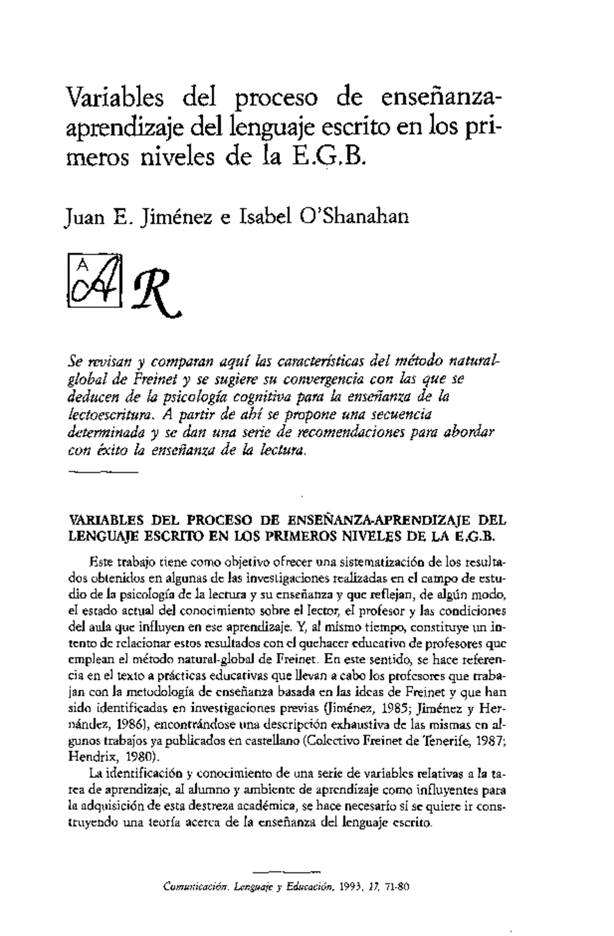 Variables del Proceso de Enseñanza-Aprendizaje del Lenguaje Escrito en ...