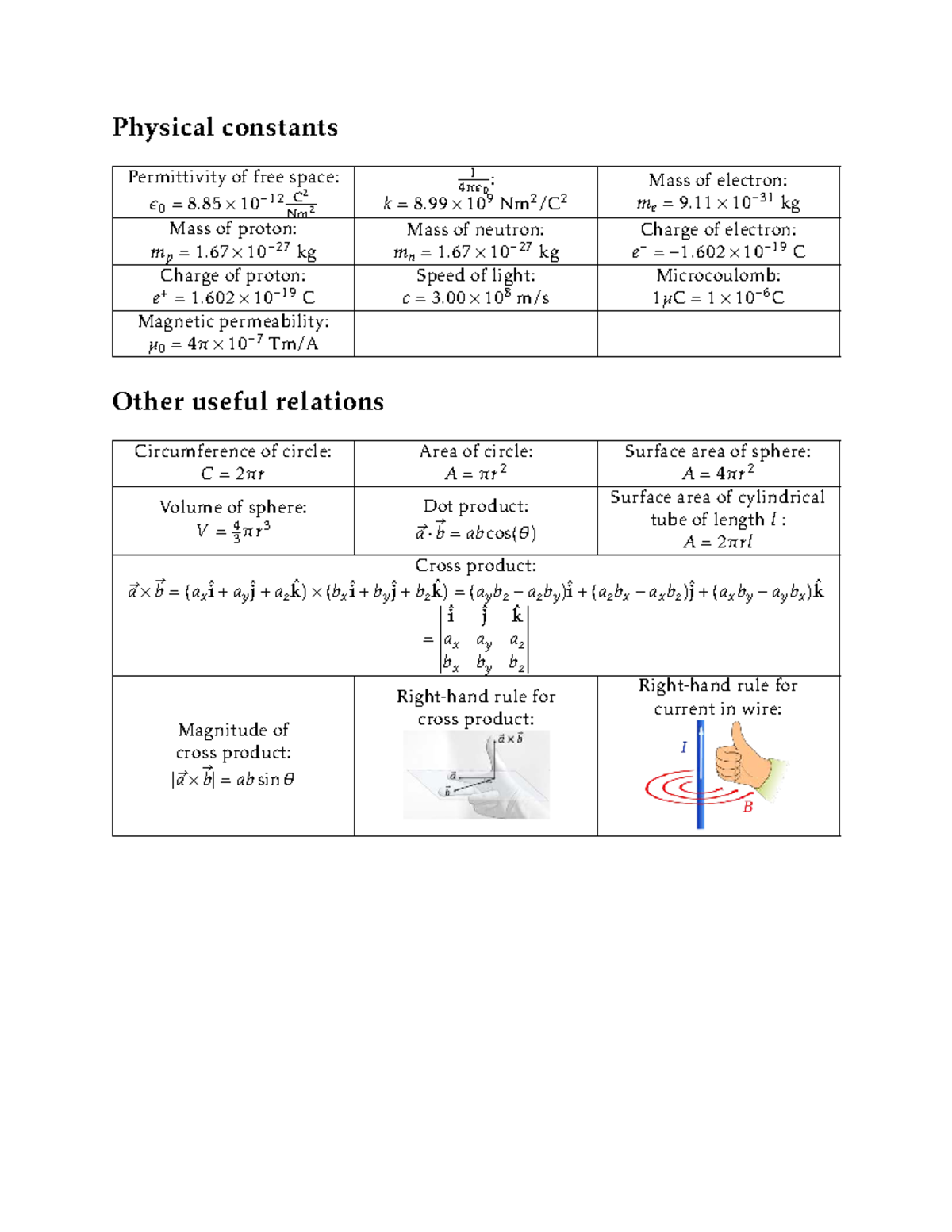 Midterm 2 Equation Sheet: Physical Constants and Relations - Studocu
