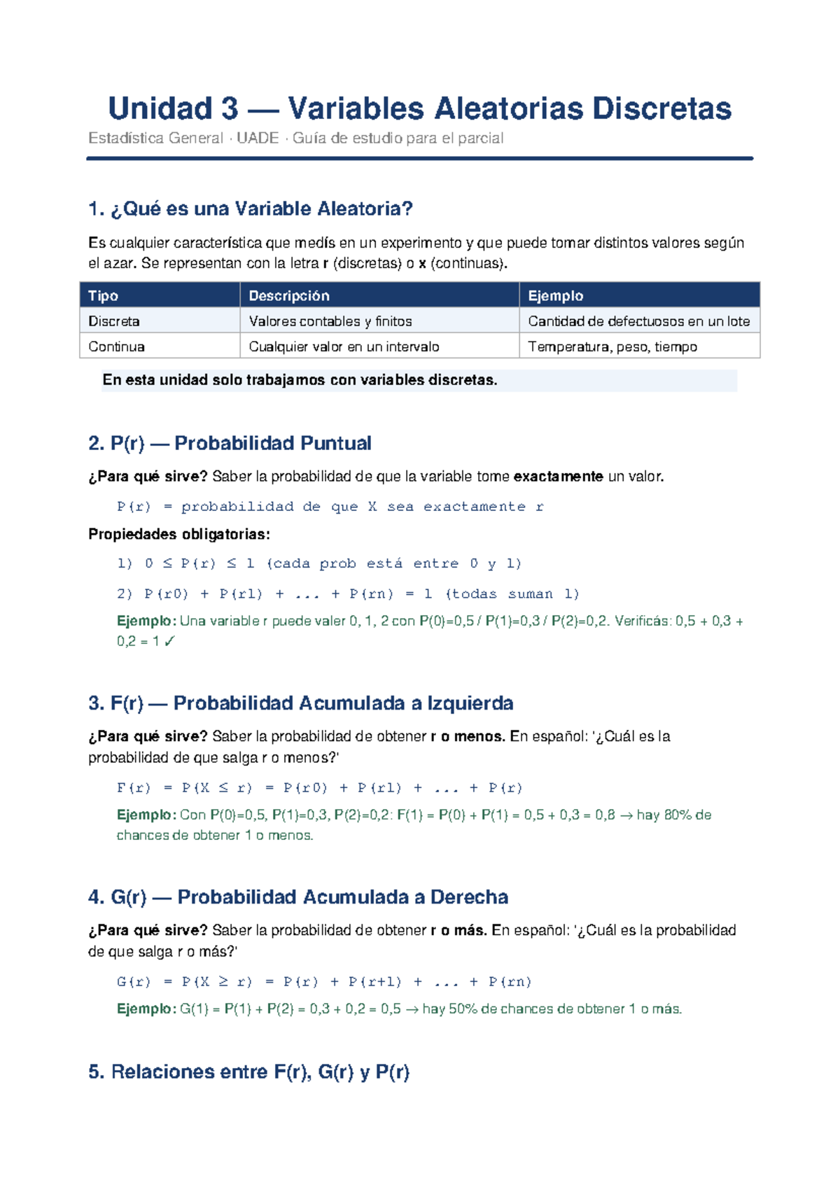 Unidad 3: Variables Aleatorias Discretas - Guía de Estudio Parcial 1 ...