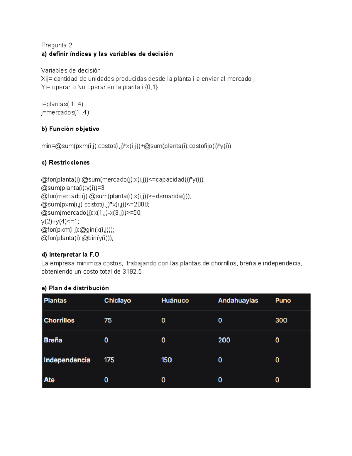 Pregunta 2: Índices y Variables de Decisión - Examen IOP Final - Studocu