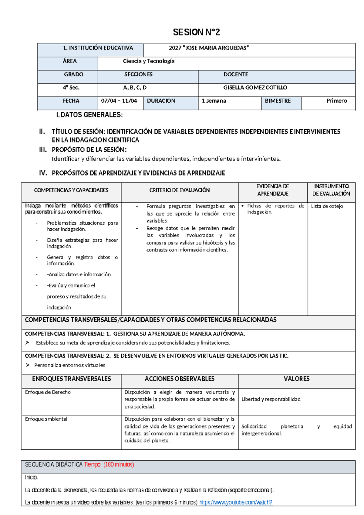 SESION 2: IDENTIFICACIÓN DE VARIABLES EN LA INDAGACIÓN CIENTÍFICA - Studocu