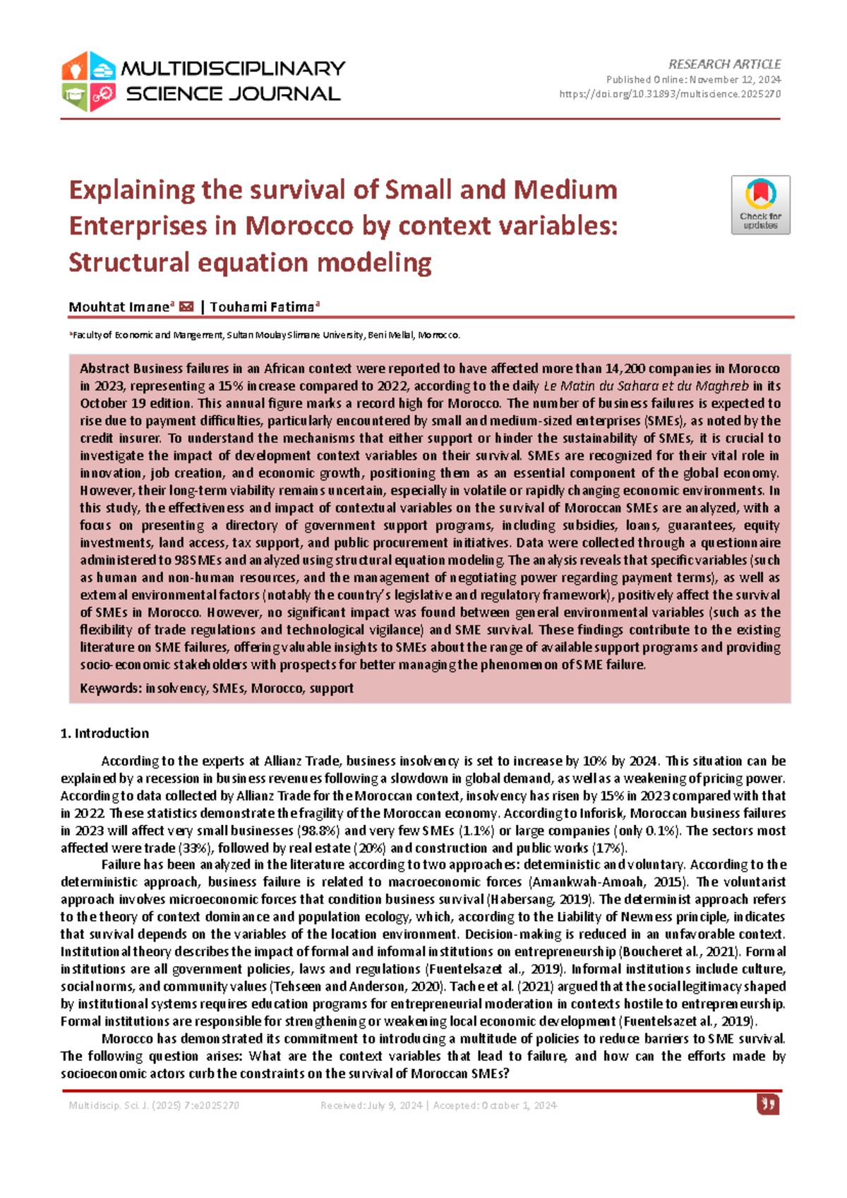 Explaining the Survival of SMEs in Morocco: Contextual Variables ...
