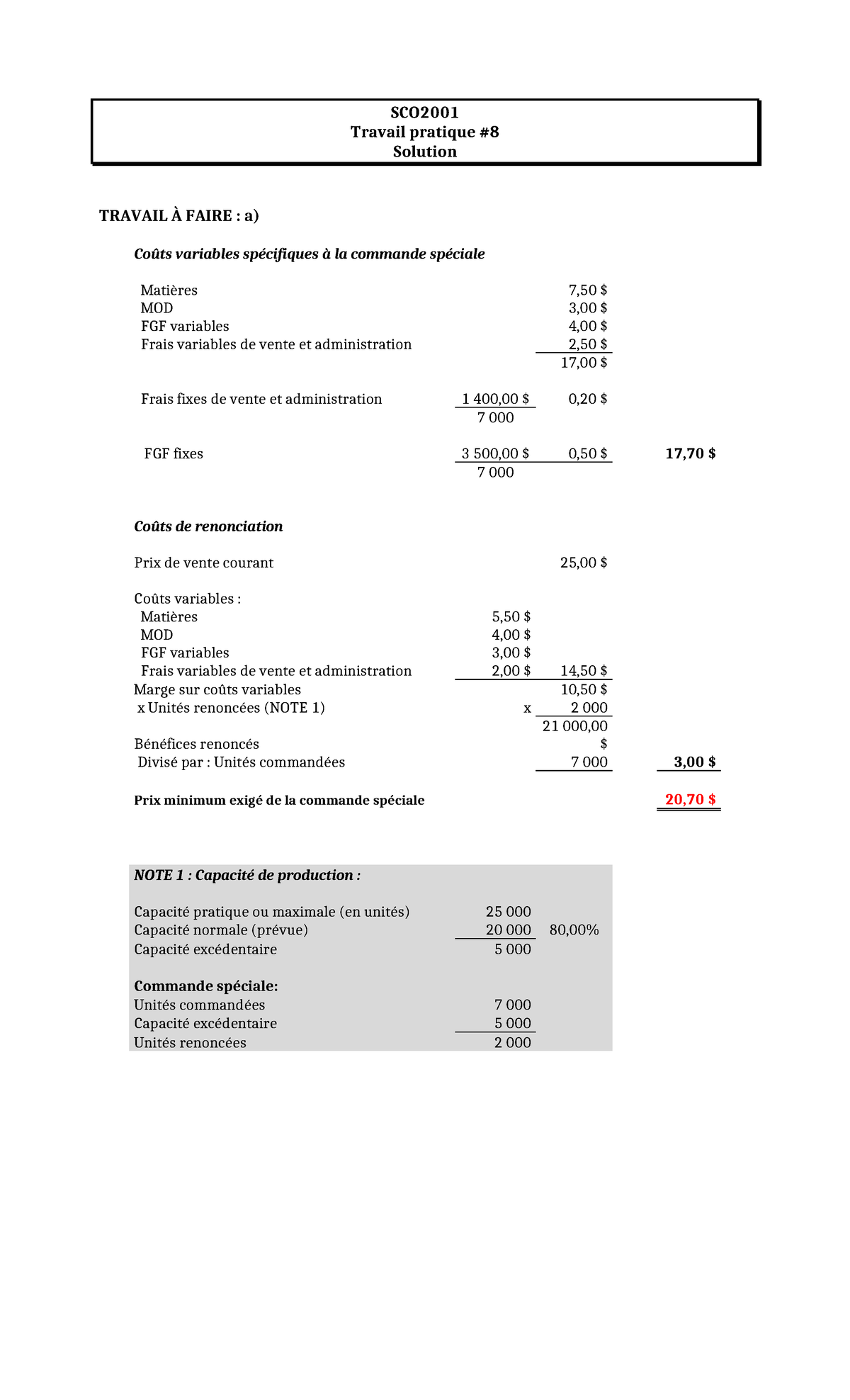 SCO2001 TP8 Solution - Coûts Variables et Commande Spéciale - Studocu