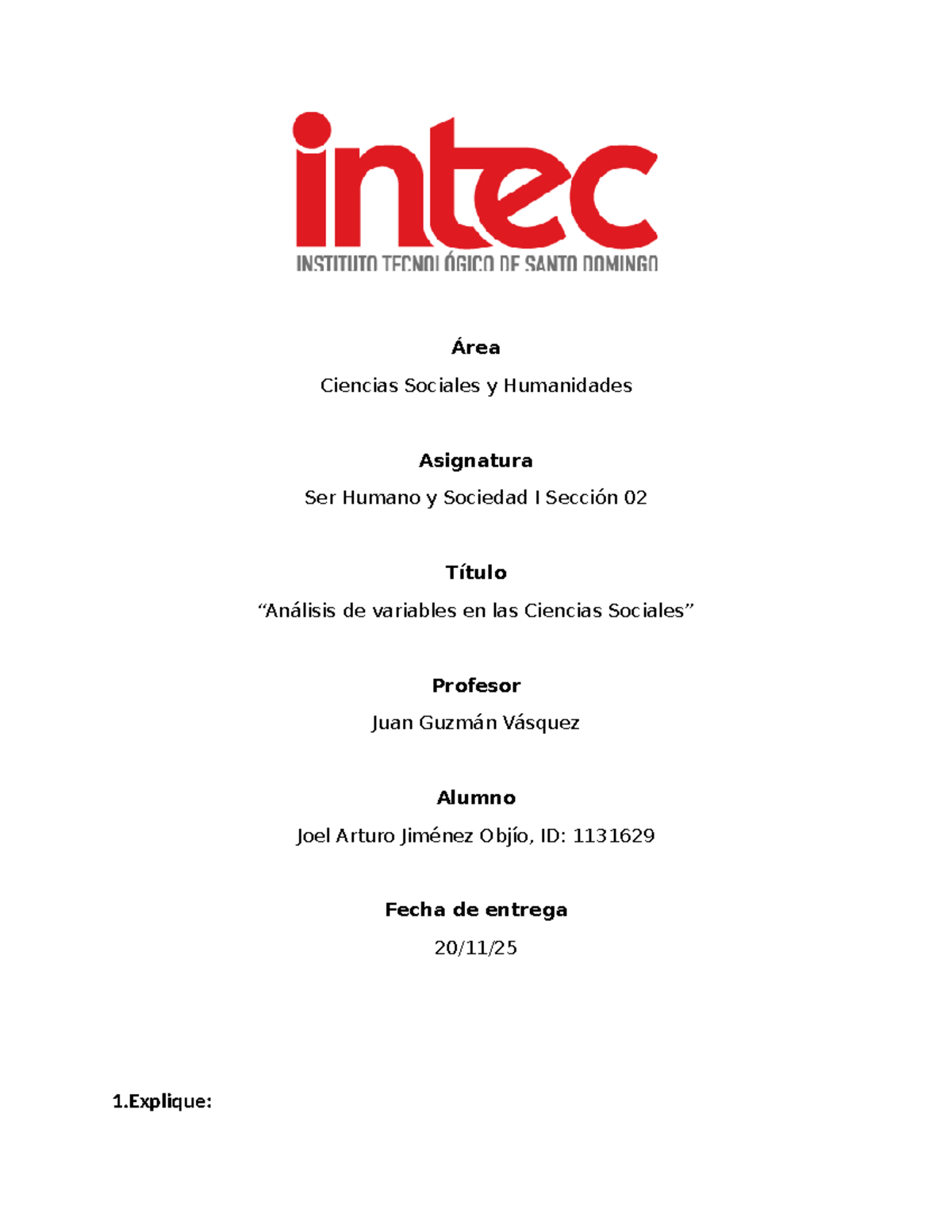 Análisis de Variables en Ciencias Sociales - Ser Humano y Sociedad I ...