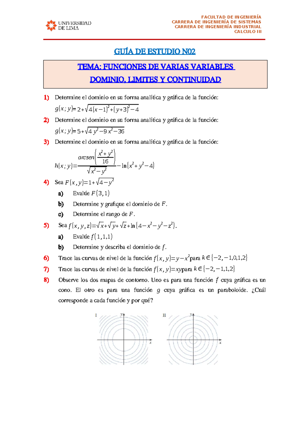 Guía de Estudio N02: Funciones de Varias Variables en Cálculo - Studocu