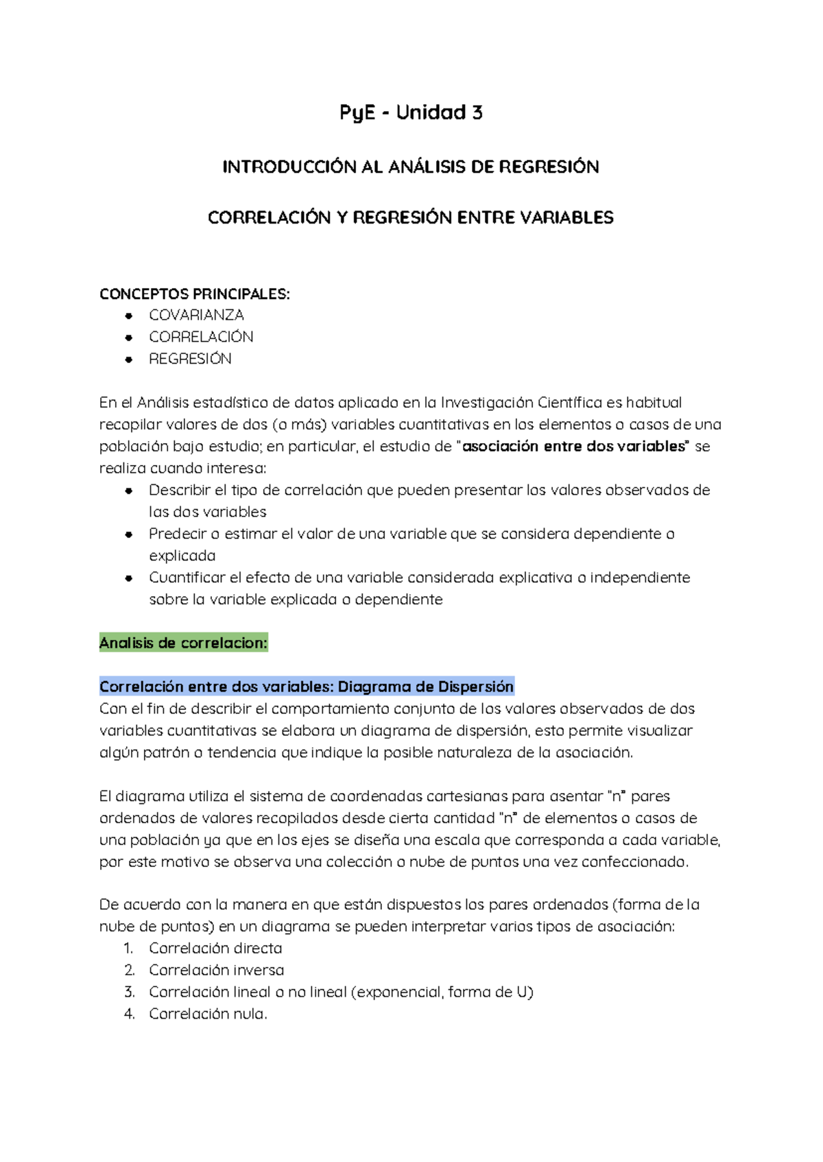 PyE Unidad 3: Análisis de Regresión y Correlación entre Variables - Studocu
