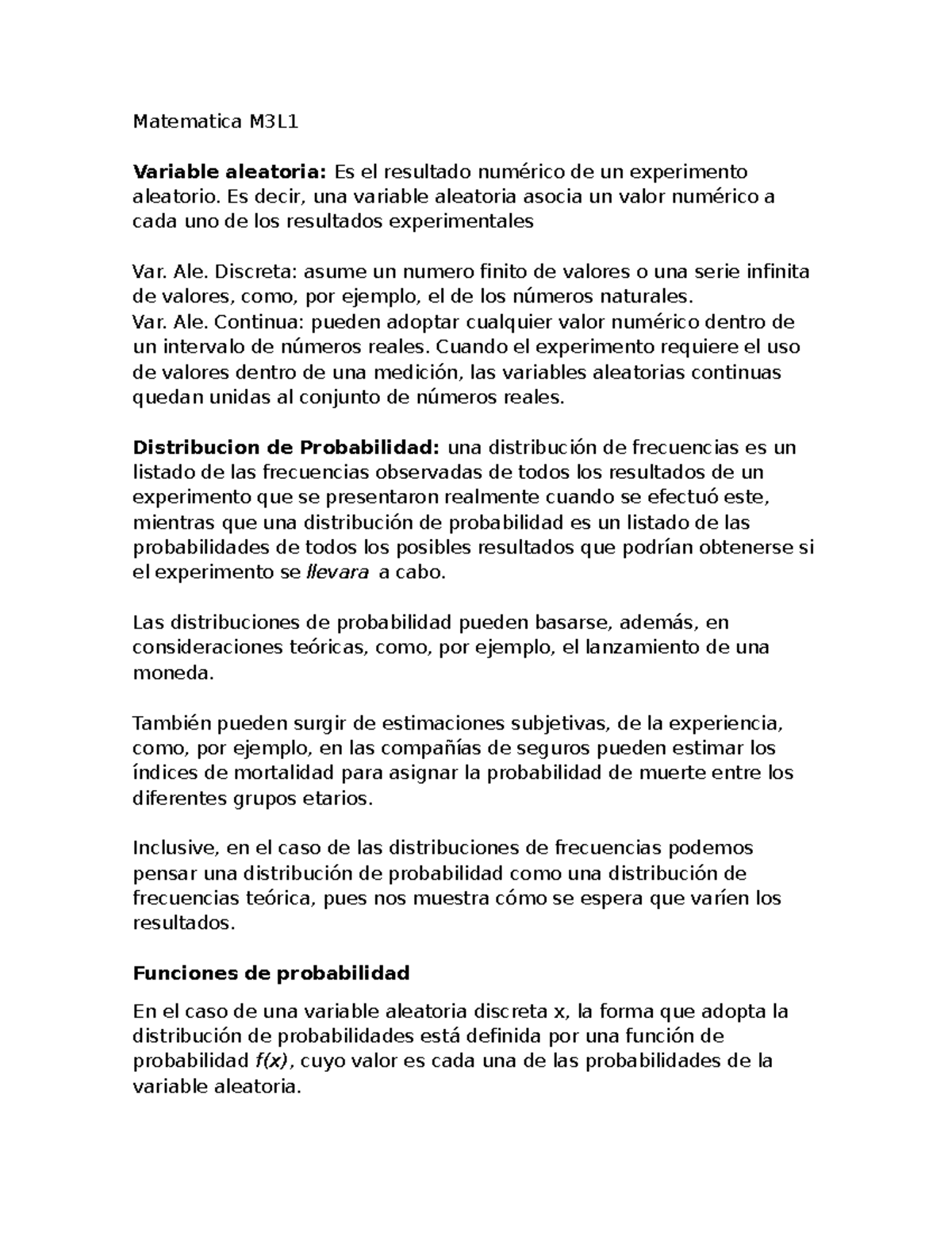 Matematica M3L1 - Apuntes sobre Variables Aleatorias y Distribuciones ...