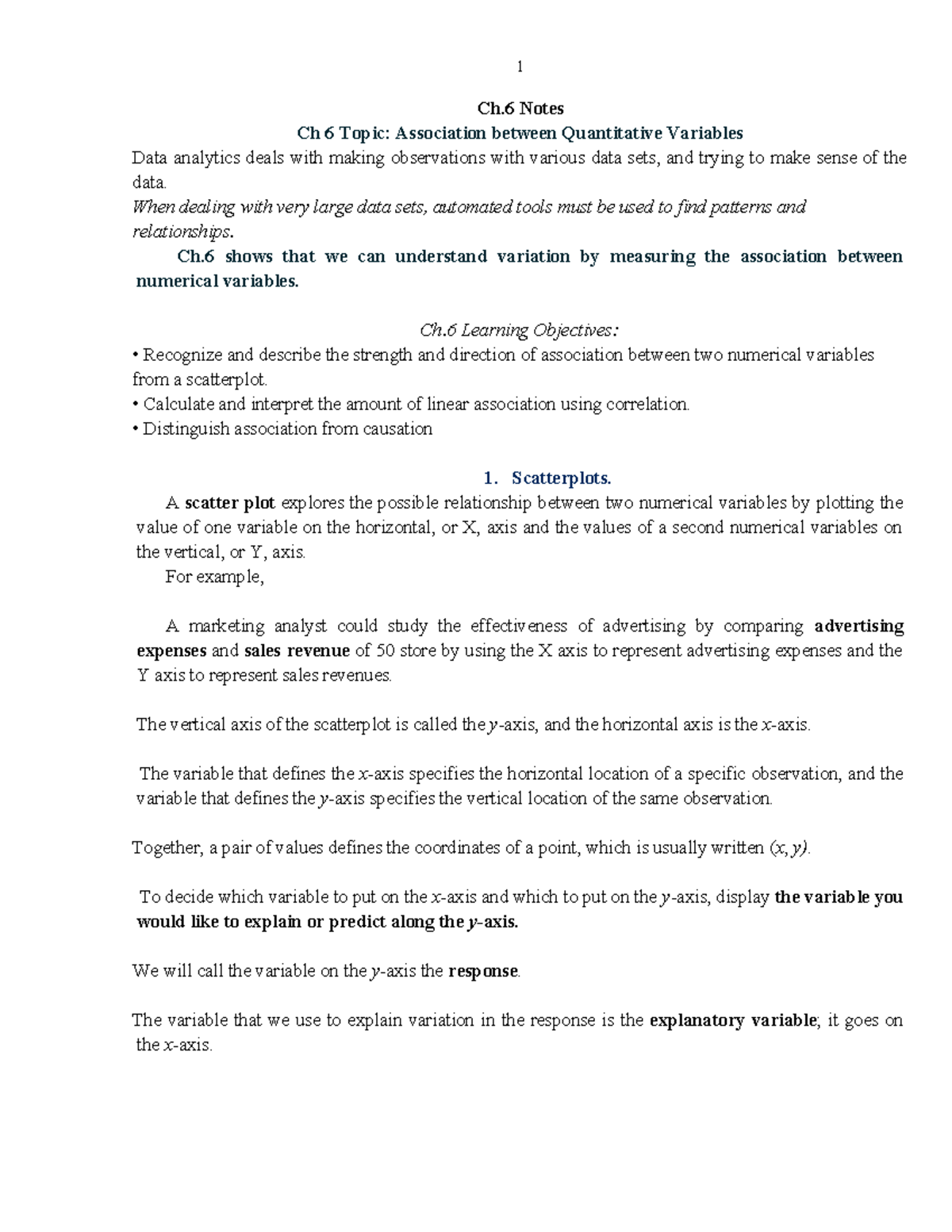 Ch.6 Notes: Association Between Quantitative Variables in Data ...