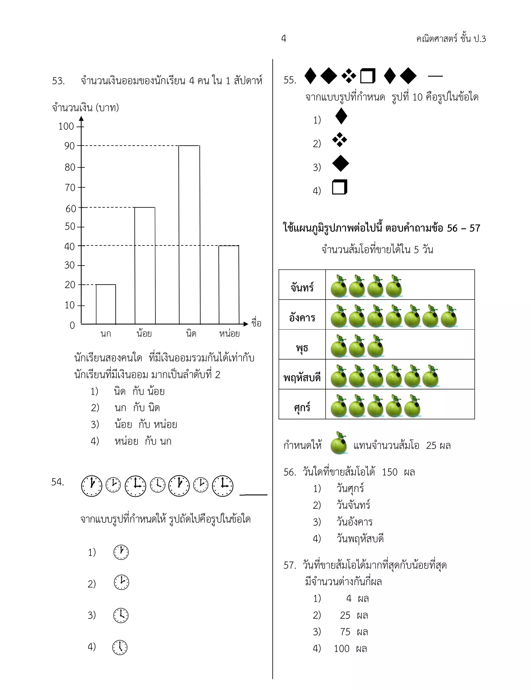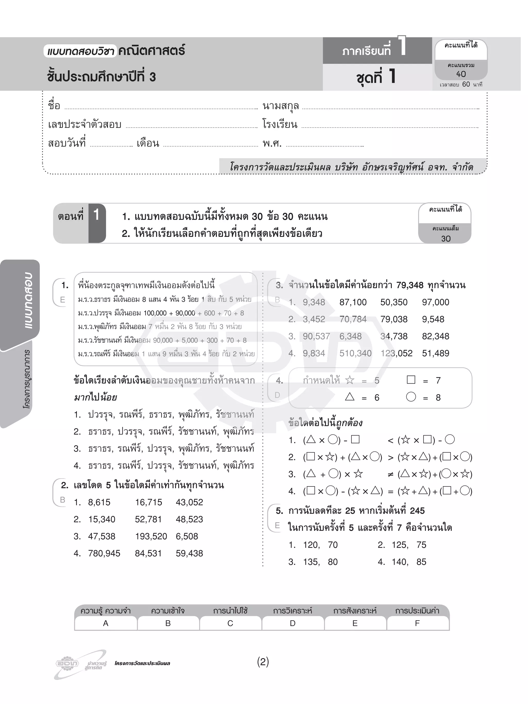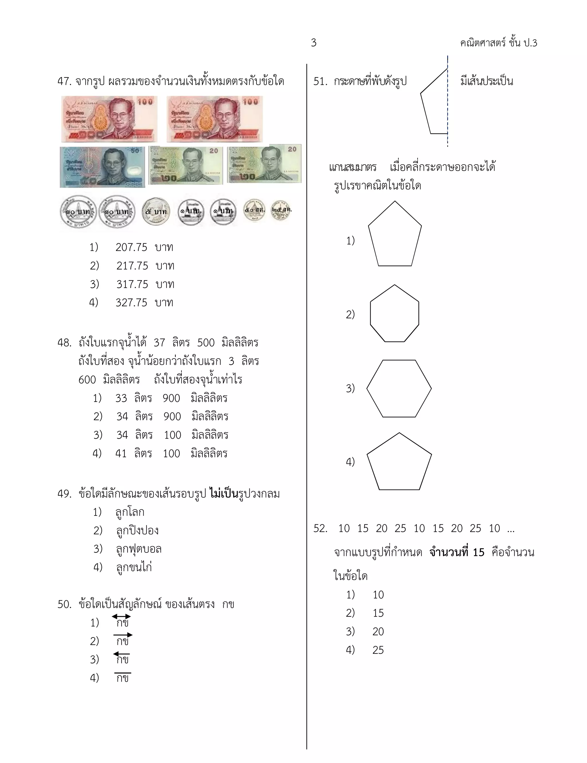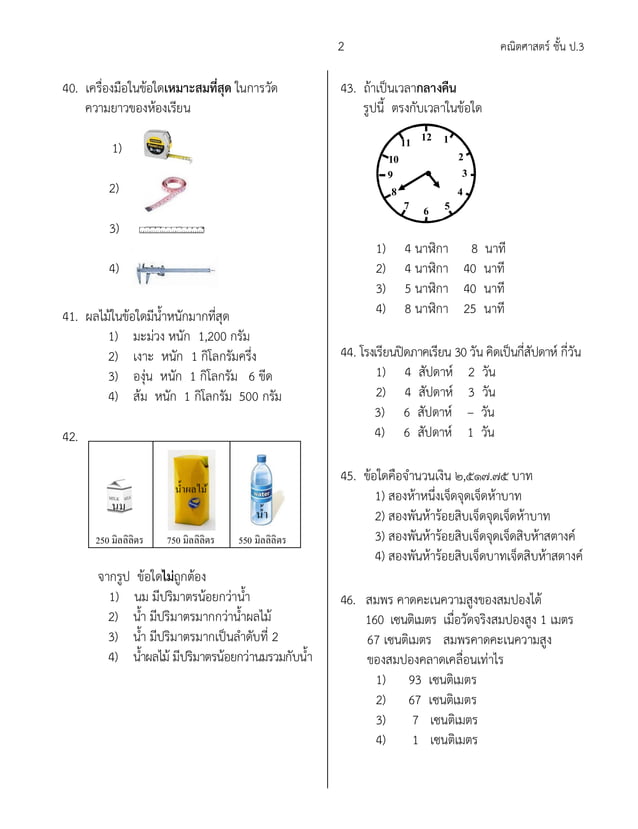 ข้อสอบ คณิตศาสตร์ ป.3 | PDF