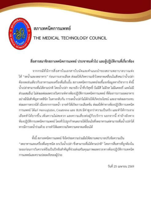 สภาเทคนิคการแพทย์เฉลย ตรวจเลือดต้องงดน้ำหรือไม่?