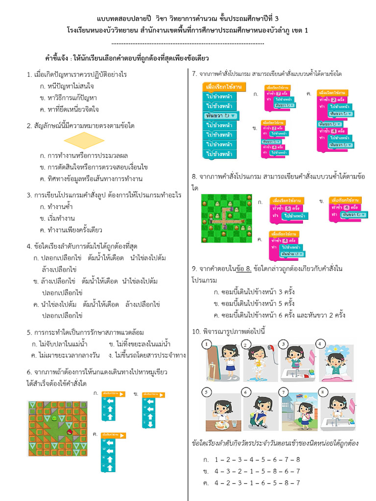 แบบทดสอบวิทยาการคำนวณ ป.3 | PDF