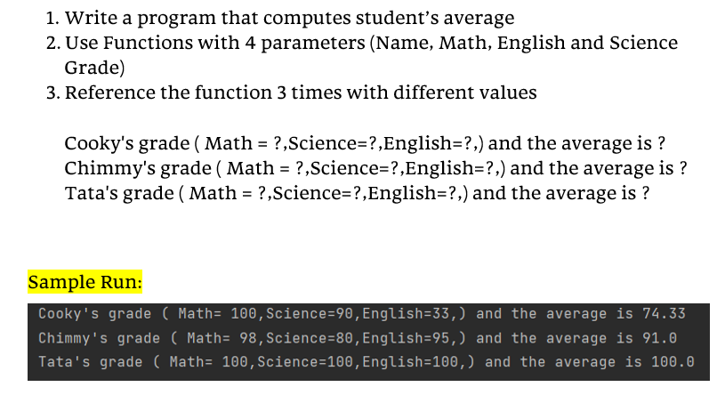 Student Average Using Functions in Python - Free Computer Programming ...