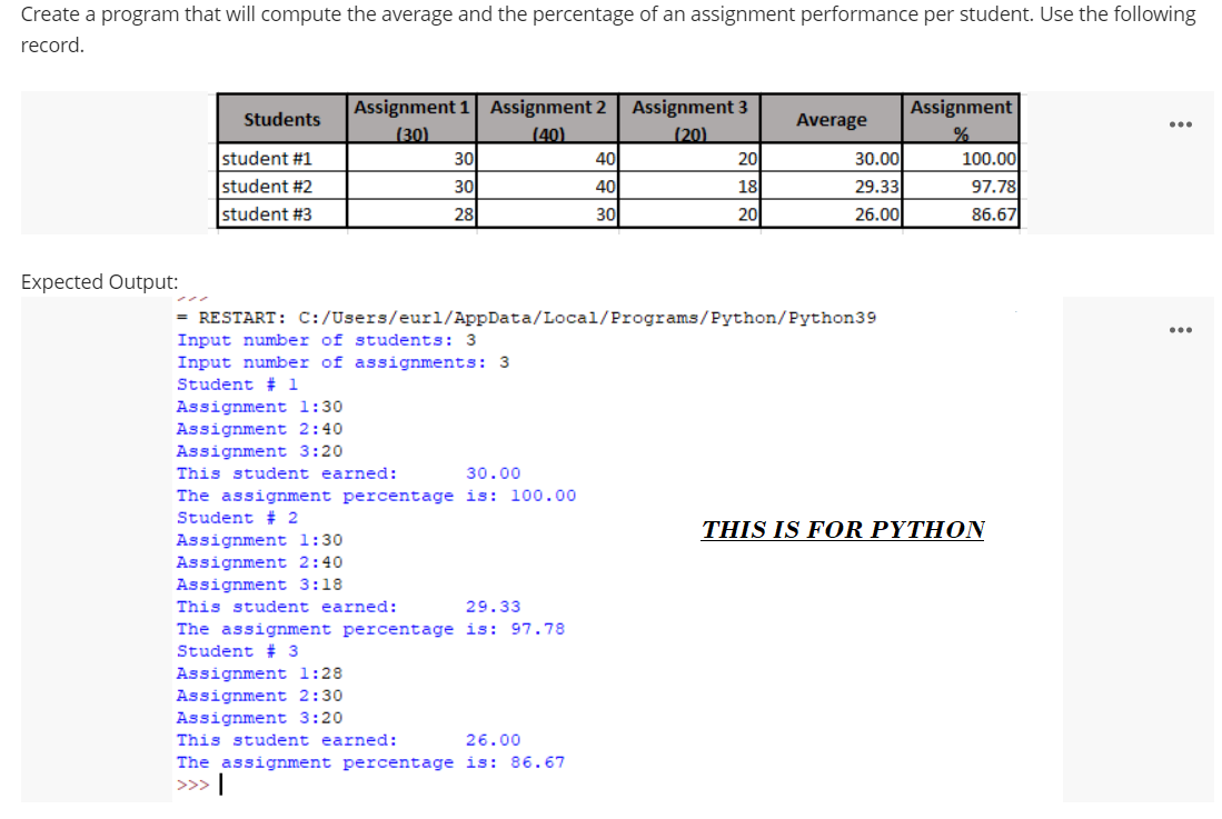 How to Calculate Student average percentage using python | python ...