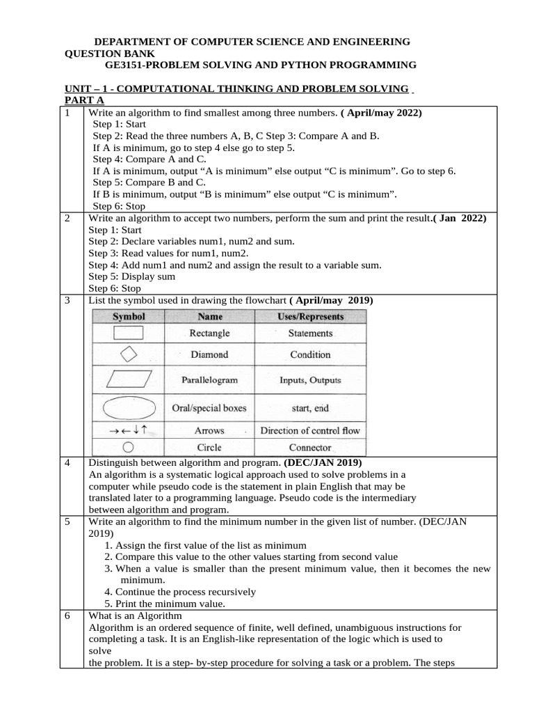 GE3151 - Problem Solving and Python Programming Question Bank - Studocu