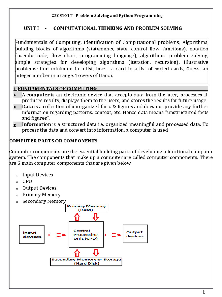 UNIT 1 Problem Solving and Python Programming | PDF | Computer Data ...