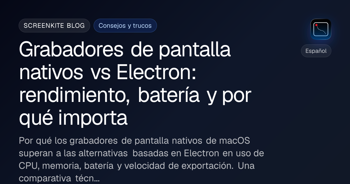 ScreenKite — Grabadores de pantalla nativos vs Electron: rendimiento ...