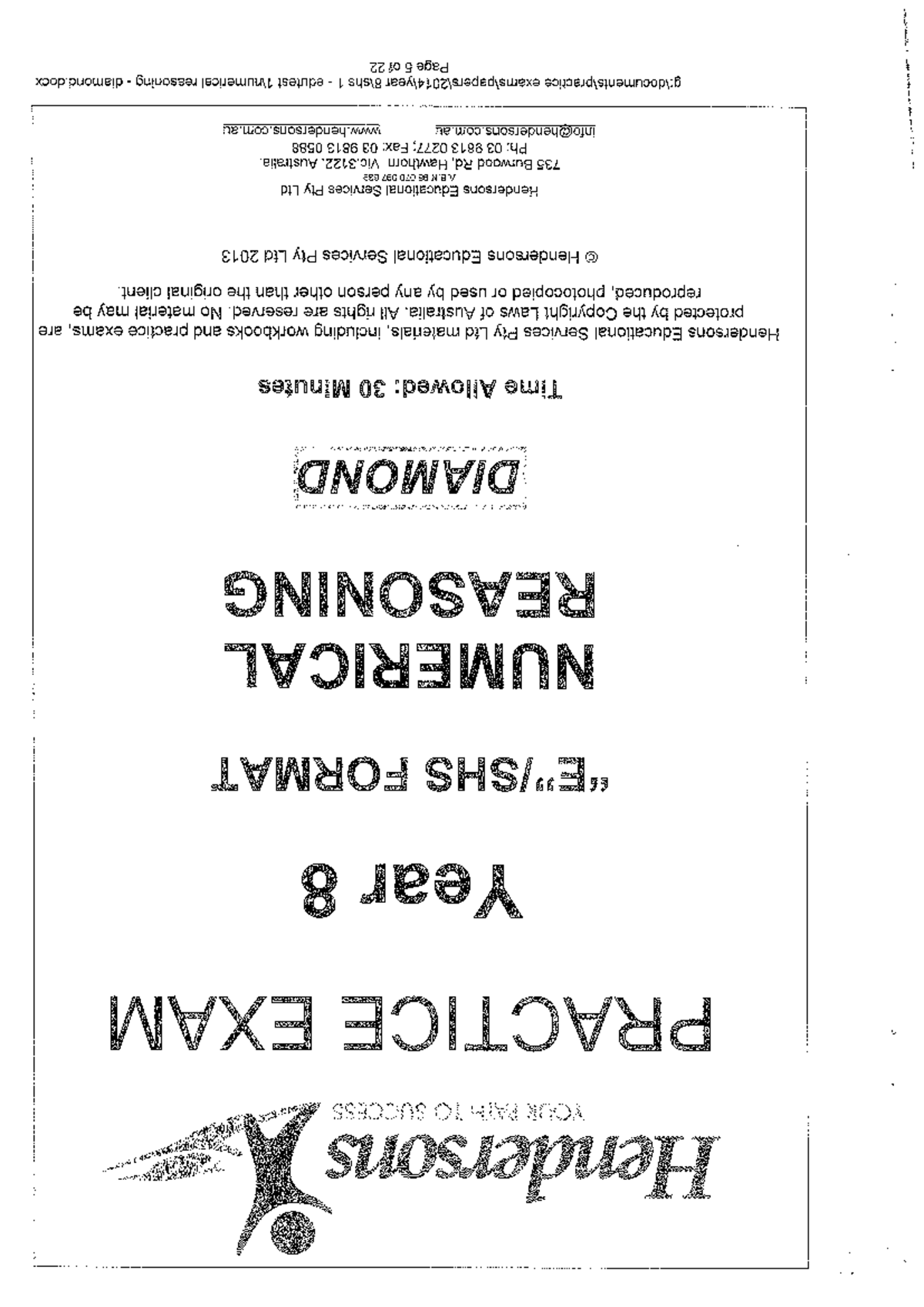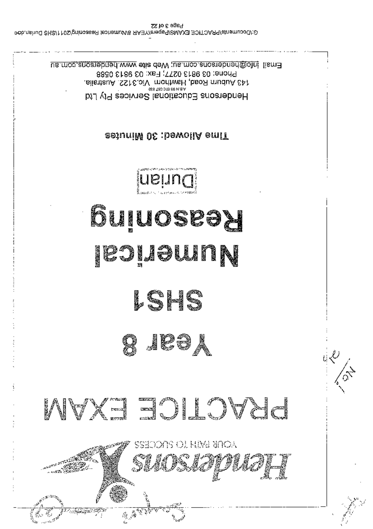 Hendersons Year 8 Numerical Reasoning Practice Exam - Studocu