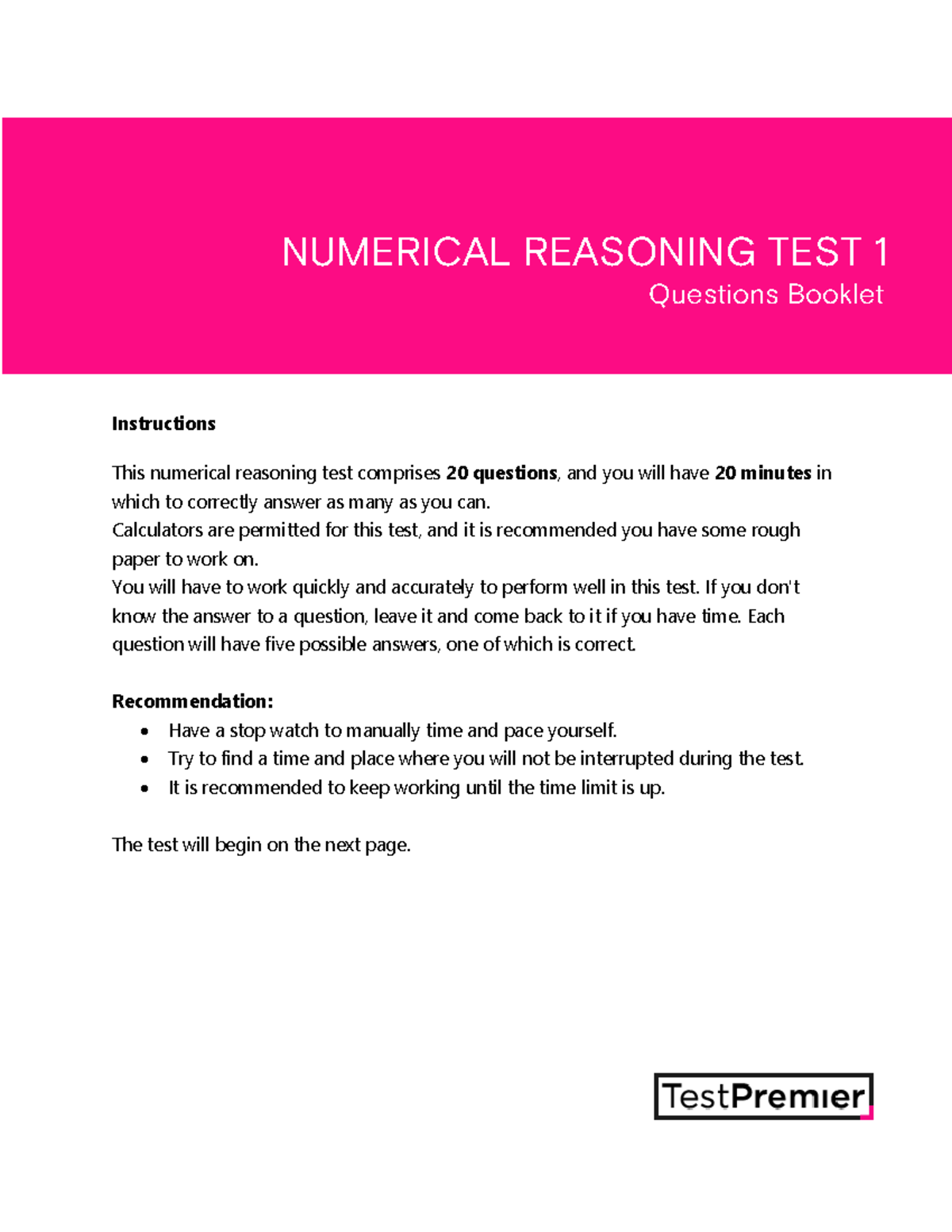 Numerical Reasoning Practice Test 1 - Mathematics Learning Support ...