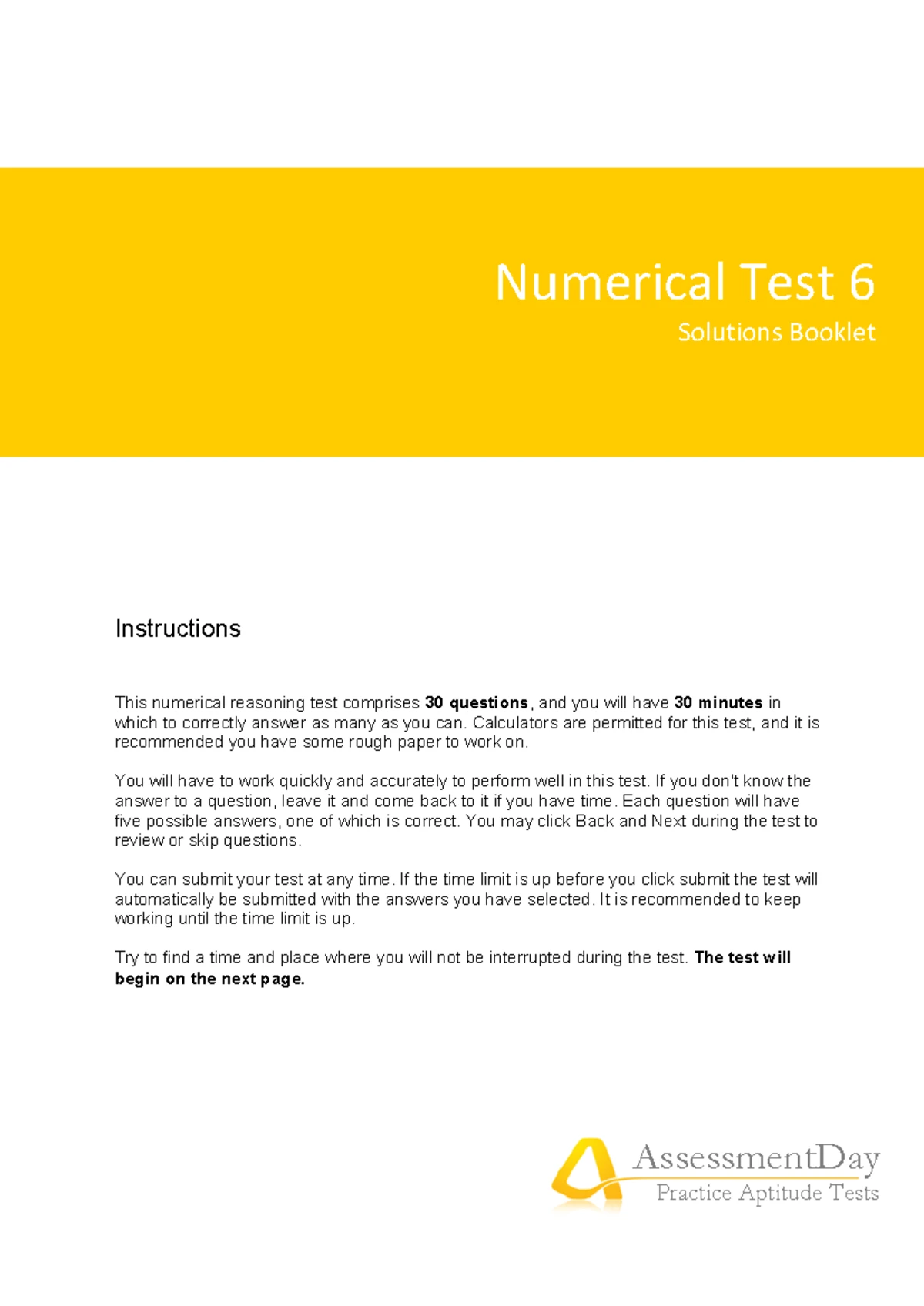 Numerical Reasoning Test 1 Solutions Booklet (AssessmentDay) - Studocu