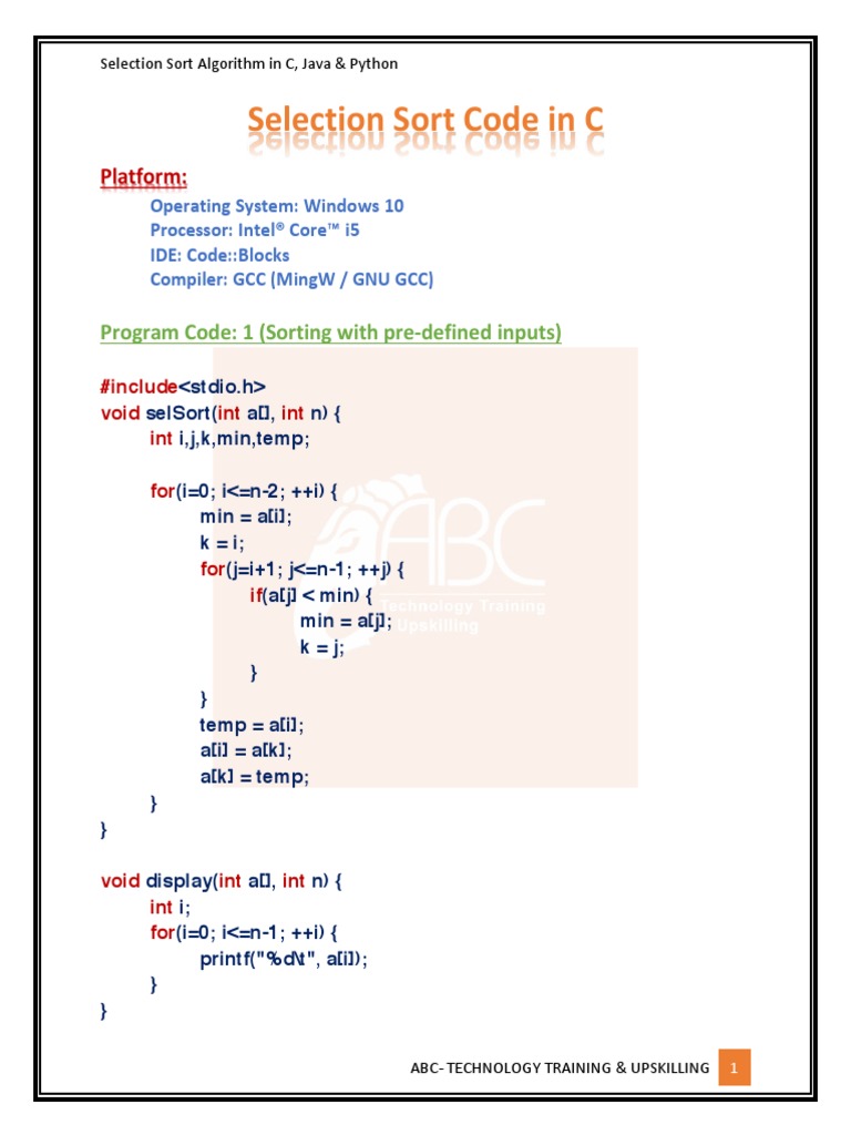 Comparing Implementation of Selection Sort Algorithm in C, Java, and ...