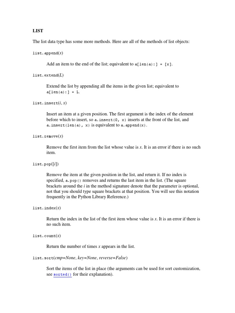 List - Append A (Len (A) :) (X) List - Extend: Sorted | PDF | Teaching ...